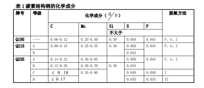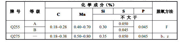 7.在供應商品鋼錠(包括連鑄)、鋼坯時,供方應保證化學成分(熔煉分析)符合表2-1規定,但為保證軋制鋼材各項性能符合本標準要求,各牌號A、B級鋼的化學成分可以根據需要進行適當調整,另訂協議。幕墻行業常選用:對焊接結構Q235-BF,Q235-BF,Q235-BF,Q235-BF,對非焊接結構Q235-A。