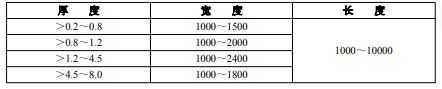 表2厚度對應的寬度及長度規格