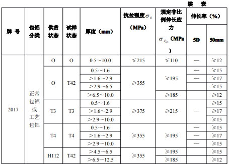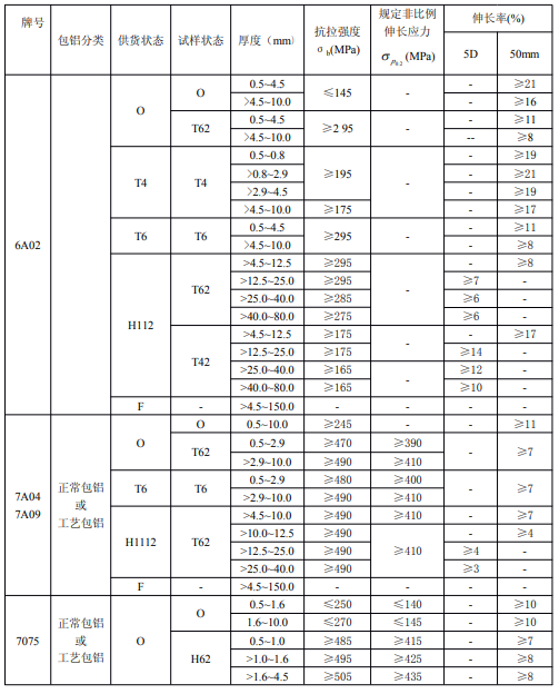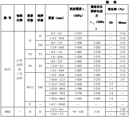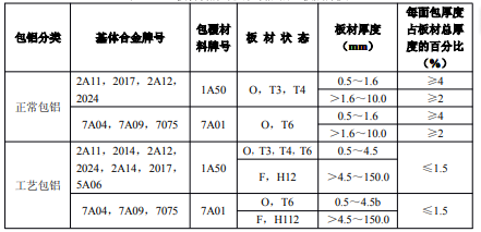 ?、诤穸刃∮诘扔?.7mm經鹽浴爐生產的退火板材,只能供應寬度小于或等于1200mm,長度小于或等于4000mm的板材。包覆層需包鋁的板材應進行雙面包覆,其包覆材料牌號及軋制后的包覆層厚度應符合表3的規定。
