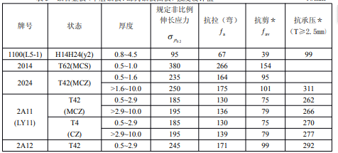 表5鋁合金板(單層鋁板、蜂窩鋁板面板)強度設計值