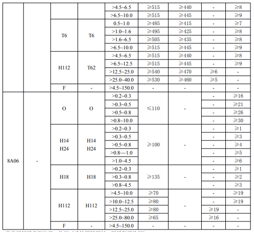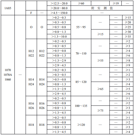注:①1070,1070A,1060,1050,1050A,1100,1145,1200,3003,3004,3A21,8A06可供應寬度小于400mm的板材,但尺寸偏差按400mm寬度的板材檢查,當供應寬度為大于400mm至1000mm時,其尺寸偏差按1000mm寬度的板材檢查;可供應長度小于1000mm的板材,其尺寸偏差按長度為1000mm的板材檢查。