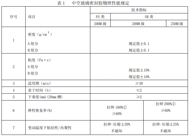 中空玻璃彈性密封膠的物理性能應符合表 1 的規定。