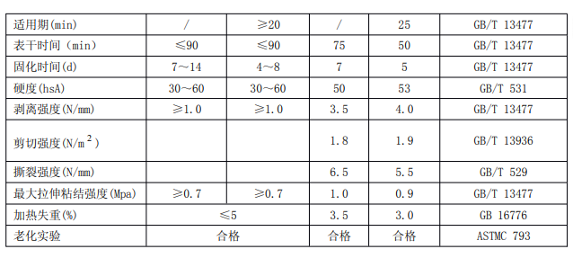 以上三種密封膠僅用于中空玻璃第二道密封膠,它們與硅酮結構(建筑)密封膠性相容,可配套使用。即凡是使用硅酮密封膠作中空玻璃結構性玻璃裝配或防風雨填縫的中空玻璃必須使用中空玻璃二道密封膠作第二道密封膠,使用其他密封膠必須作相容性試驗。